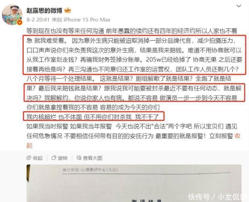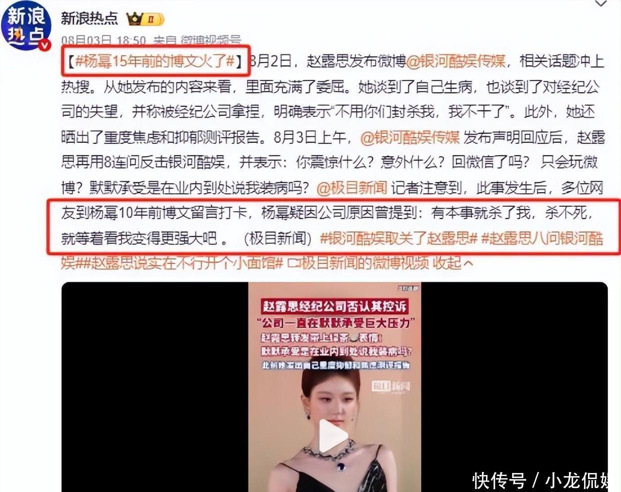 就在今年夏天,赵露思因为忍受不了经纪公司的“折腾”跑出来曝光了一堆事情,明显带着那种“我受够了,别想我能过得轻松”的味道。照她说的,公司的态度简直像看待工具一样,打骂什么的都变成家常便饭,久而久之,她感觉自己都快受不了了,身体也开始出状况。